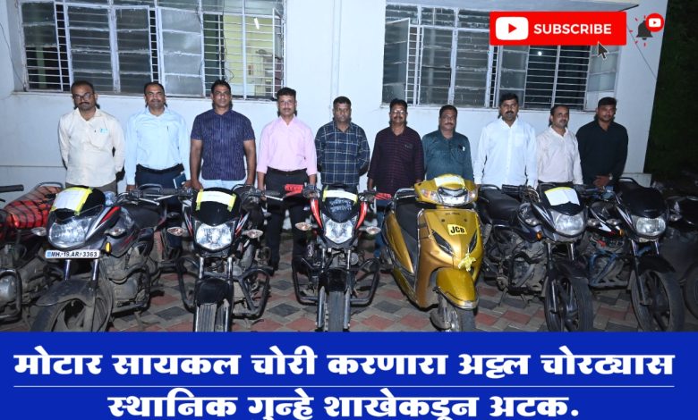 मोटार सायकल चोरी करणारा अट्टल चोरट्यास स्थानिक गुन्हे शाखेकडून अटक.