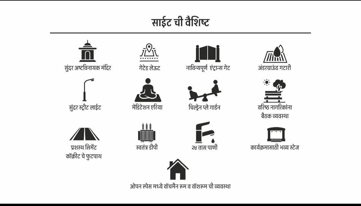 - NA रेसिडेन्शियल प्लॉट्स – 900 ते 4750 चौ.फुटपर्यंत पर्याय