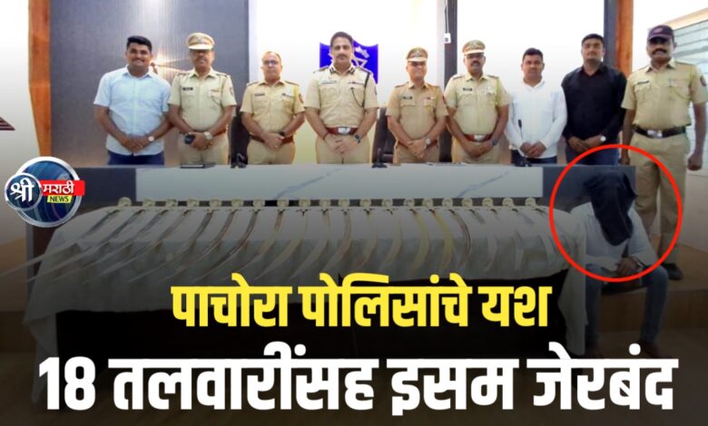 पाचोरा (ता. पाचोरा) :पाचोरा पोलिस ठाण्याच्या कार्यक्षेत्रात अवैधरित्या व विनापरवाना १८ तलवारी विक्रीसाठी बाळगणाऱ्या इसमावर पोलिसांनी धडक कारवाई करत त्याला जेरबंद केले आहे.