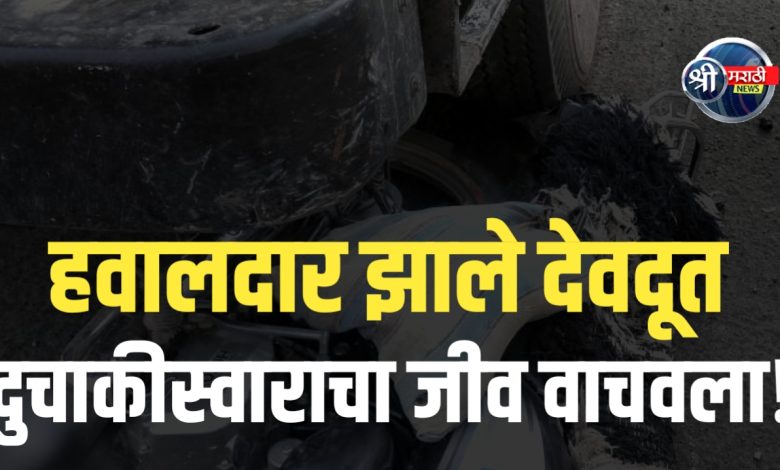सदर दुचाकीस्वार चुकून डंपरच्या पुढच्या डाव्या चाकामध्ये अडकला होता. काही क्षणात मोठा अपघात होण्याची शक्यता होती. पण हवालदार देशमुख आणि मुंडे यांनी प्रसंगावधान राखत त्या तरुणाला तात्काळ डंपरच्या चाकाखालून सुरक्षितपणे बाहेर ओढले, आणि त्याचा जीव वाचवला.