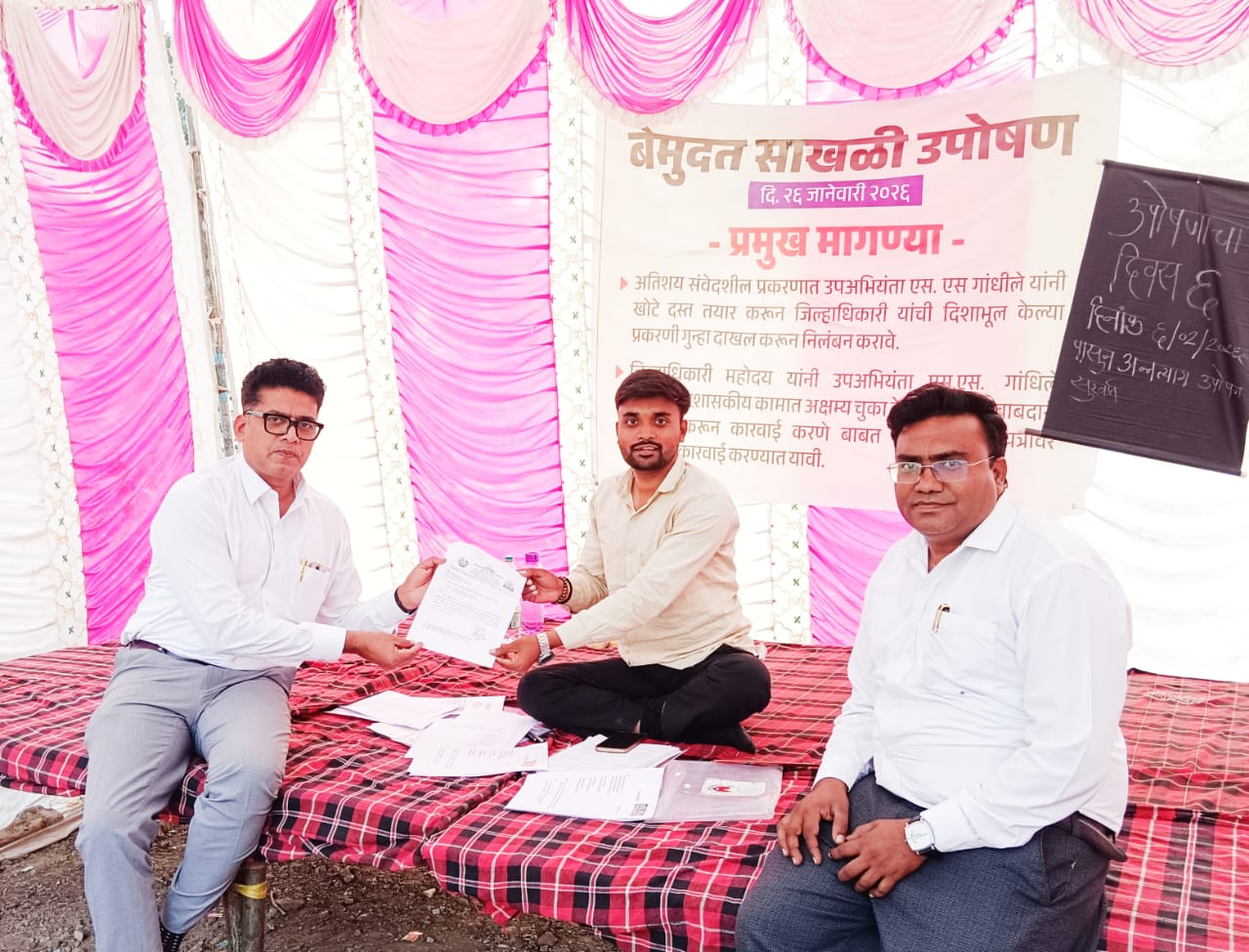 प्रशासकीय चौकशीत पारदर्शकता असावी आणि जर कागदपत्रे बनावट आढळली, तर संबंधित अधिकारी एस. एस. गांधीले यांच्यावर भारतीय न्याय संहिता (BNS) कलम ३३५ व ३३६ अन्वये गुन्हा दाखल करून त्यांना निलंबित करावे, अशी मागणी निवेदनात करण्यात आली आहे. मागणी मान्य न झाल्यास ‘जलत्याग’ करण्याचा इशाराही देण्यात आला आहे.