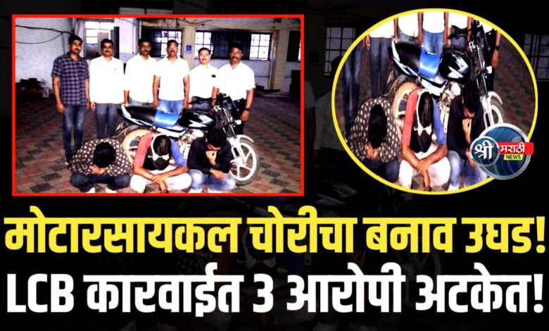 जळगाव प्रतिनिधी | श्री मराठी न्यूज जळगाव जिल्ह्यात गेल्या काही महिन्यांपासून मोटारसायकल व सायकल चोरीच्या घटनांमध्ये वाढ झाल्यामुळे पोलीस यंत्रणा सतर्क झाली असून, या संदर्भात मोठी आणि महत्त्वाची कारवाई करत स्थानिक गुन्हे शाखा (LCB), जळगावच्या पथकाने मोटारसायकल चोरीचा बनाव उघडकीस आणून तीन आरोपींना अटक केली आहे.