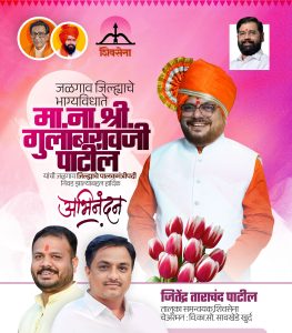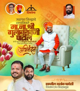 जळगाव जिल्ह्याच्या विकासाचा चेहरा बदलणारे, जनसामान्यांच्या समस्या सोडवण्यासाठी सदैव तत्पर राहणारे आणि प्रशासन व राजकारणात उत्तम समन्वय साधणारे आपल्या प्रिय नेते मंत्री गुलाबराव पाटील साहेब यांना तिसऱ्यांदा (हॅट्रिक) जळगाव जिल्ह्याचे पालकमंत्री म्हणून बहाल केल्याबद्दल मनःपूर्वक अभिनंदन !