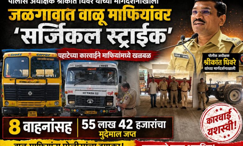 जळगावात वाळू माफियांवर पोलिसांची ‘सर्जिकल स्ट्राईक’ ८ वाहनांसह ५५ लाख ४२ हजारांचा मुद्देमाल जप्त; पहाटेच्या कारवाईने माफियांमध्ये खळबळ
