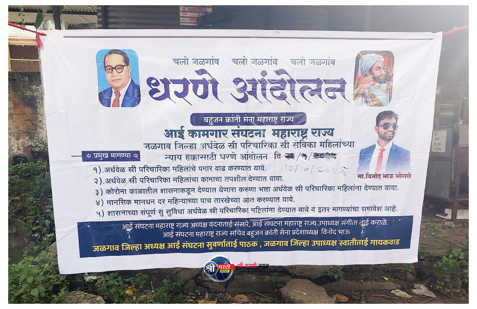 जळगाव (प्रतिनिधी) – जळगाव जिल्हा परिषदेसमोर आजपासून “बहुजन क्रांती सेना” आणि “आई संघटना” यांच्या वतीने महाराष्ट्रातील हजारो अर्धवेळ स्त्री परिचारिका (Part-Time Nurses) यांच्या न्याय्य हक्कांसाठी तीव्र आंदोलनाला सुरुवात करण्यात आली आहे.